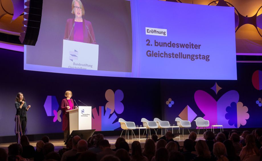 Beim 1. Gleichstellungstag präsentierten Lisi Maier und Dr. Arn Sauer das Arbeitsprogramm der Bundesstiftung Gleichstellung für das Jahr 2023.