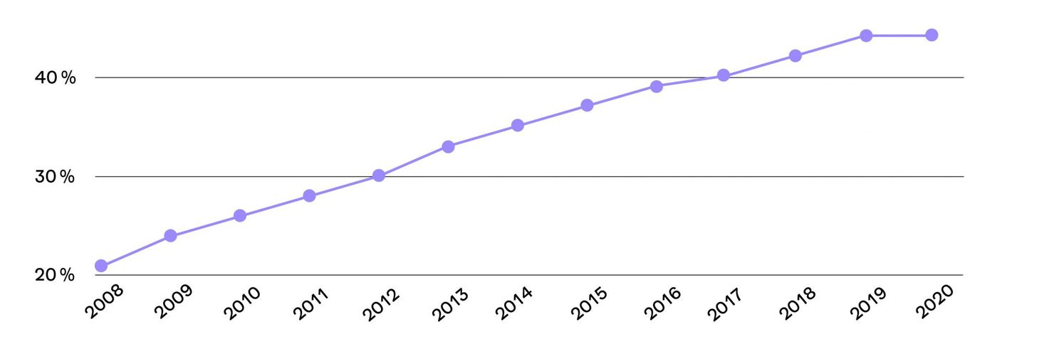 Abbildung 4: Entwicklung der Väterbeteiligung am Elterngeld; Quelle: Väterreport 2023 (BMFSFJ 2023: 33)