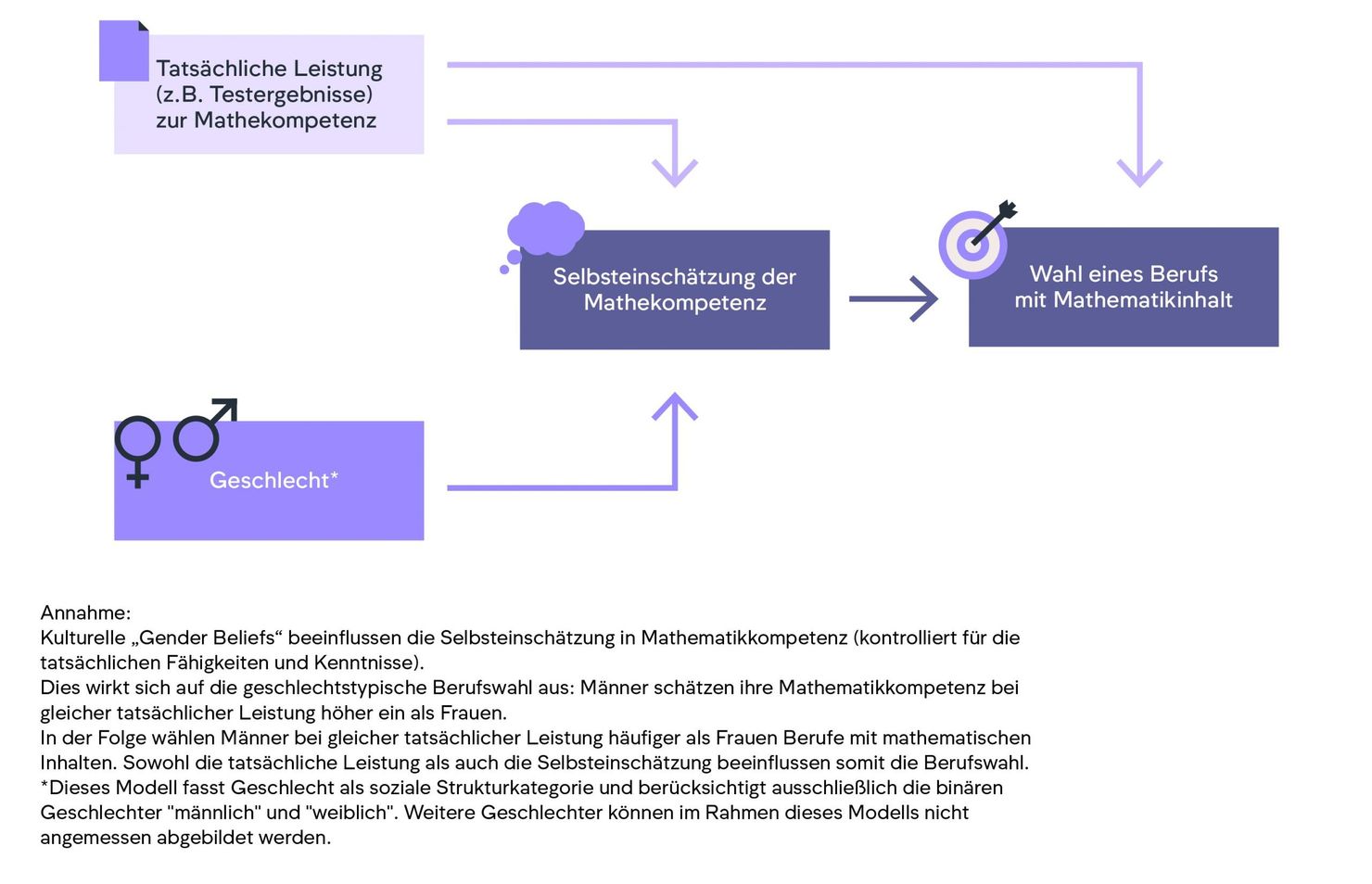 Abbildung 4: Der Einfluss von tatsächlicher Leistung und Selbsteinschätzung auf die Berufswahl am Beispiel der Mathematikkompetenz; Quelle: Correll (2001: 1699); eigene übersetzte Darstellung